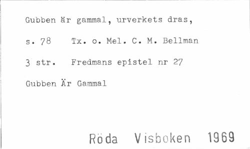 //// Gubben är gammal, urverkets dras, s. 78 Tx. o. Mel. C. M. Bellman 3 str. Fredmans epistel nr 27 Gubben Ar Gammal //// Roda Visboken 1969 ////