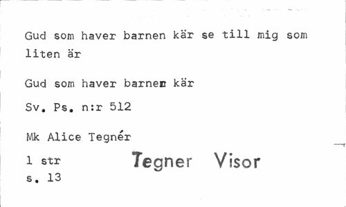 //// Gud som haver barnen kär se till mig som liten är //// Gud som haver barnen kär Sv. Ps. n:r 512 //// Mk Alice Tegnér //// i str Tegner Visor //// s. 13 ////