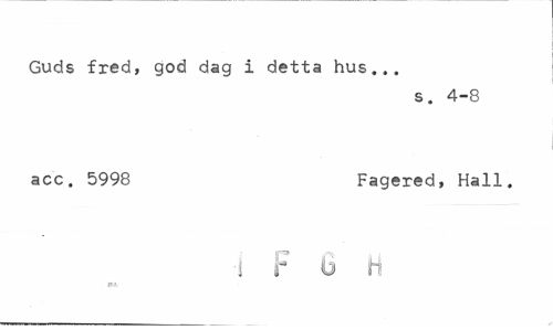 //// Guds fred, god dag i detta hus... //// s. 4-8 //// acc. 5998 Fagered, Hall. //// i f G H ////