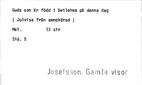//// Guds son är född i Betlehem på denna dag ( Julvi sa från amnehärad ) Mel. 13 str //// Sid. 5 //// Josefsson: Gamla visor ////