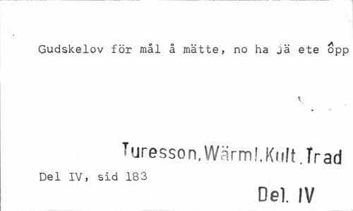 //// Gudskelov för mål å mätte, no ha jä ete opp //// v //// Turesson, WärmUult. Trad //// Del IV, sid 183 //// Del. IV ////