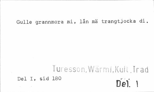 //// Gulle grannmora mi, lån mä trangtjocka di. //// Turesson.Wärml.Kult.Trad //// Del I, sid 180 //// Del. 1 ////