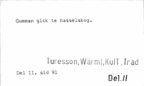 //// Gumman gick te hasselskog, //// Turesson,Wärml.KulT Jr ad //// Del II, sid 91 . //// Del.// ////