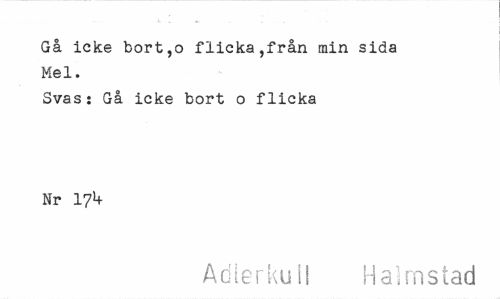 //// Gå icke bort,o flicka,från min sida Mel. //// Svas: Gå icke bort o flicka Nr 17!+ //// Adlerkull Halmstad ////