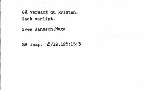 //// Gå varsamt du kristen. Gäck varligt. //// Svea Jansson,Nagu SR insp. 58/12.126:15:3 ////