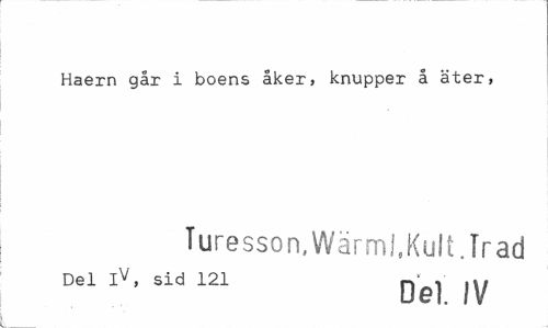 //// Haern går i boens åker, knupper å äter, //// Turesson, Wärml.Kult.Trad //// Del Iv, sid 121 , iw //// De]. IV ////