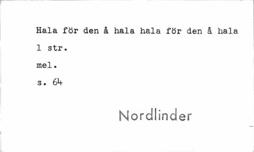 //// Hala för den å hala hala för den å hala 1 str. mel. s. 61+ //// Nordlinder ////