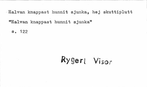 //// Halvan knappast hunnit sjunka, hej skuttiplutt "Halvan knappast hunnit sjunka" s. 122 //// Rygeri Visor ////