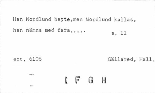 //// Han Nordlund hette,men Mordlund kallas, han nämns med fara...s ^ //// acc. 6106 Gällared, Hall //// { F 0 H ////