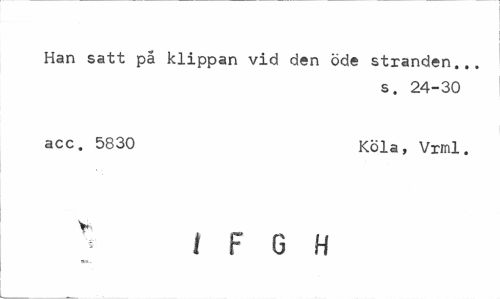 //// Han satt på klippan vid den öde stranden... //// s. 24-30 //// acc. 5830 Köla, Vrml. //// * i F G H //// ¦ ////