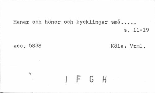//// Hanar och hönor och kycklingar små... //// s. 11-19 //// acc. 5838 Köla, Vrml. //// I F G H ////