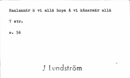 //// Hanlannär ä vi allä hopa å vi kåmersär allä 7 str. s. 56 //// J Lundström ////