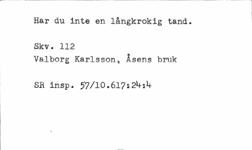 //// Har du inte en långkrokig tand. Skv. 112 //// Valborg Karlsson, Åsens bruk SE insp. 57/10.6178 2^ ////