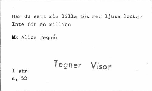 //// Har du sett min lilla tös med ljusa lockar Inte för en million //// Mk Alice Tegnér //// Tegnér Visor //// 1 str s. 52 ////