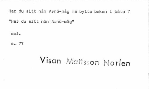 //// Har du sitt nån Arnö-måg mä bytta bakan i båta ? "Har du sitt nån Arnö-måg" //// mel. s. 77 //// Visan Mattsson Norlen ////