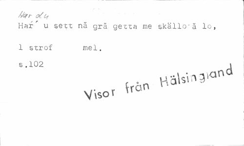 //// //Cfr otCf //// Har' u sett nä gra getta me skäll0'ä lo, 1 strof mel. //// s.102 1 //// £ .n HäW>"3vand //// V\sor vran ////