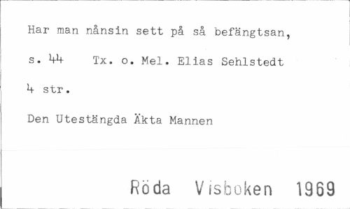 //// Har man nånsin sett på så befängtsan, s. bb Tx. o. Mel. Elias Sehlstedt b str. //// Den Utestängda Akta Mannen //// Röda Visboken 1969 ////