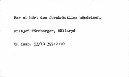 //// Har ni hört den förskräckliga händelsen. Fritjof Törnberger, Hällaryd SR insp. 53/10.597:2:10 ////