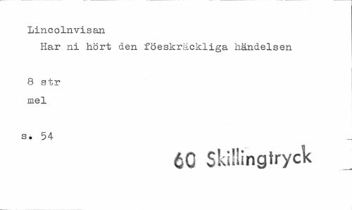 //// Lincolnvisan //// Har ni hört den föeskräekliga händelsen //// 8 str mel //// s. 54 //// 60 Skiilingiryck ////
