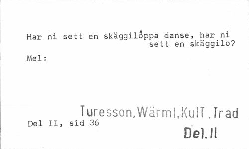 //// Har ni sett en skäggiloppa danse, har ni //// sett en skäggilo? //// Mel: //// Turesson,Wärml.KulT .Trad //// Del II, sid 36 //// Del. I! ////