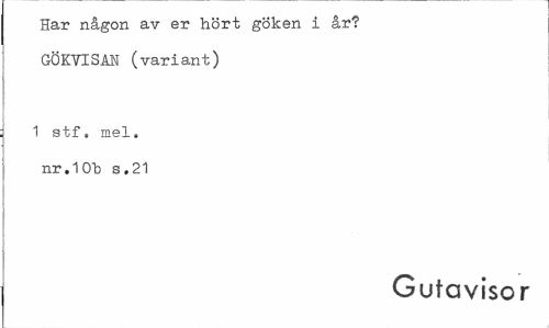 //// Har någon av er hört göken i år? GÖKVISAN (variant) //// 1 stf. mel. nr. 10"b s.21 //// Gutavisor ////