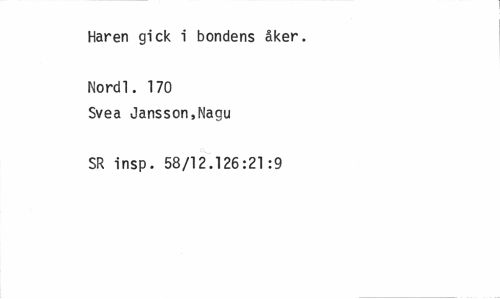 //// Haren gick i bondens åker. //// Nord]. 170 Svea Jansson,Nagu //// SR insp. 58/12.126:21:9 ////