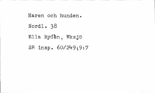 //// Haren och hunden. Nordl. 38 Ella Rydén, Eksjö SR insp. 60/21+9-,9:7 ////