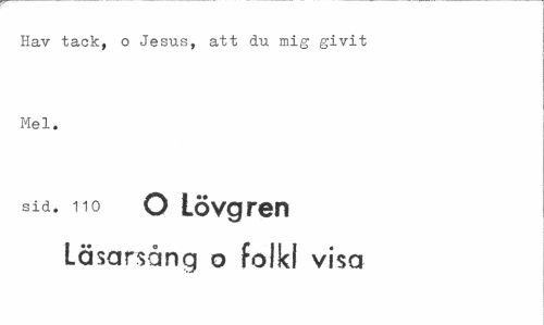 //// Hav tack, o Jesus, att du mig givit Mel. //// sid. 110 O Lövgren //// Läsarsång o folkl visa ////