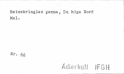 //// Heimskringlas panna, Du höga Nord Mel. //// Nr. 66 //// Ådierkul! IFGH ////