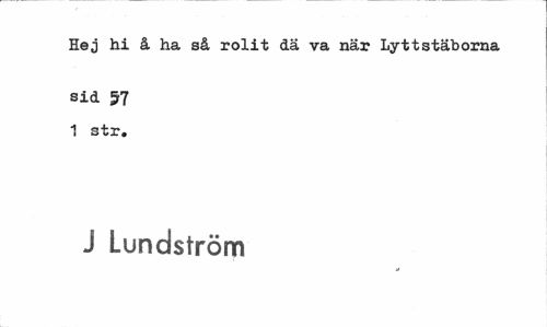 //// Hej hi å ha så rolit dä va när Lyttstäborna //// sid 57 1 str. //// J Lundström ////