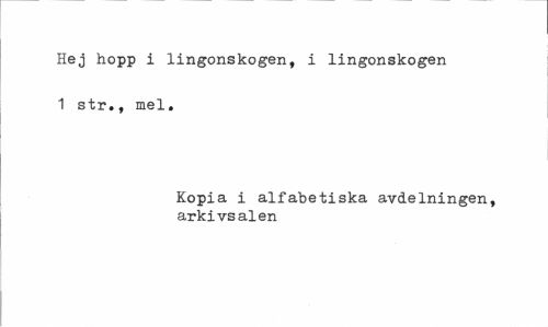 //// Hej hopp i lingonskogen, i lingonskogen 1 str., mel. //// Kopia i alfabetiska avdelningen, arkivsalen ////