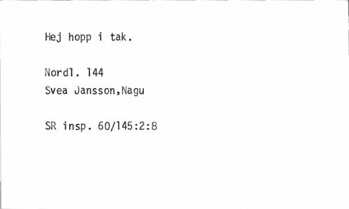 //// Hej hopp i tak. //// Nord!. 144 Svea Jansson,Nagu //// SR insp. 60/145:2:8 ////