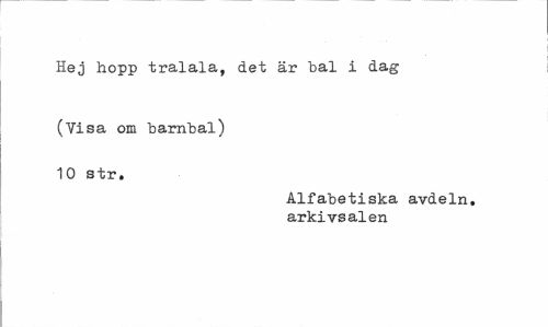 //// Hej hopp tralala, det är bal i dag //// (Visa om barnbal) 10 str. //// Alfabetiska avdeln. arkivsalen ////