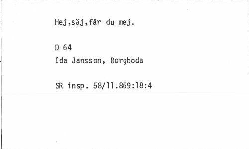 //// Hej,säj,får du mej. D 64 //// Ida Jansson, Borgboda SR insp. 58/11.869:18:4 ////