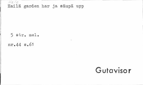 //// Hailä garden har ja säupä upp //// 5 str. mel. nr.44 s.61 //// Gutavisor ////