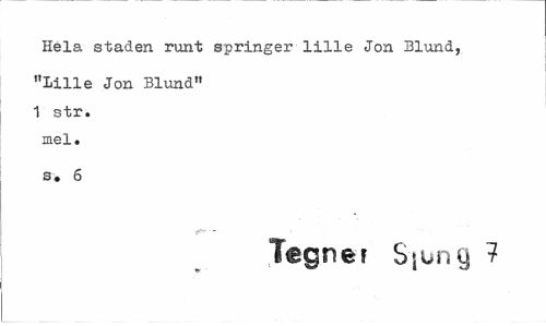 //// Hela staden runt springer lille Jon Blund, //// "Lille Jon Blund" 1 str. mel. //// s. 6 //// legner Sjung ? ////