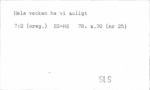 //// Hela veckan ha vi soligt //// 7:2 (oreg.) ES-HE 78, s.30 (nr 25) //// SLS ////