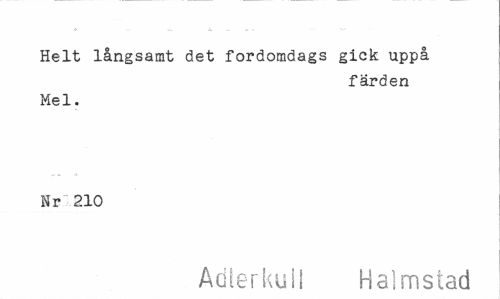 //// Helt långsamt det fordomdags gick uppå //// färden //// Mel. Nr 210 //// Adie r ku ii Halmstad ////