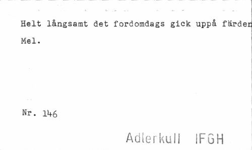 //// Helt långsamt det fordomdags gick uppå färdei Mel. //// Nr. 11+6 //// Aöierkull IFGH ////