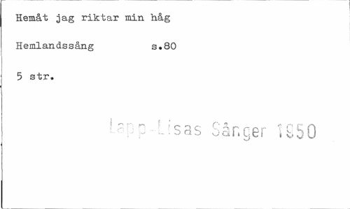 //// Hemåt jag riktar min håg Hemlandssång s.80 //// 5 str. //// Lapp-lisas Sånger IS50 ////