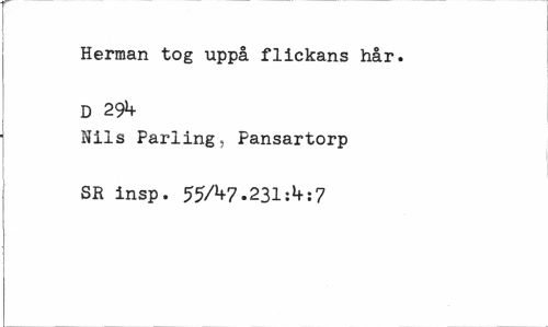 //// Herman tog uppå flickans hår. D 29^ //// Nils Parling, Pansartorp SR insp. 55A7-231:^:7 ////