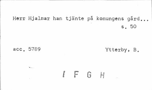 //// Herr Hjalmar han tjänte på konungens gård... //// s. 50 //// acc. 5789 Ytterby, B. //// I F G H ////