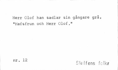 //// Herr Olof han sadlar sin gångare grå, "Hafsfrun och Herr Olof." //// nr* 12 Ste ffens fclkv ////