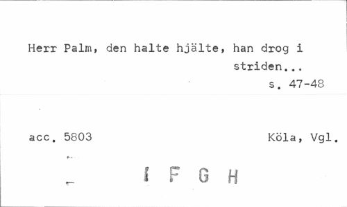 //// Herr Palm, den halte hjälte, han drog i //// striden. .. //// s. 47-48 //// acc. 5803 Köla, Vgl. //// I F G H ////