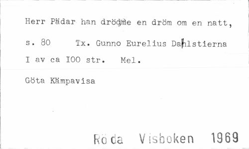 //// Herr Pädar han dröcJÄe en dröm om en natt, //// s. 80 Tx. Gunno Eurelius Dajilstierna I av ca 100 str. Mel. //// Göta Kämpavisa //// Rccis Visboken 1969 ////
