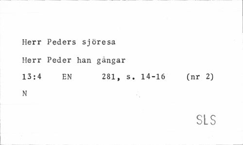 //// Herr Peders sjöresa Herr Peder han gängar //// 13:4 EN 281, s. 14-16 (nr 2) //// N //// SLS ////