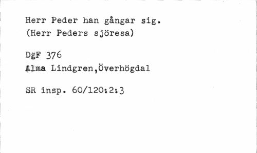 //// Herr Peder han gångar sig. (Herr Peders sjöresa) //// DgF 376 //// Aima Lindgren,Överhögdal SR insp. 60/120:2:3 ////