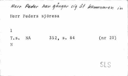//// # //// /Verr fiee/er o/ /cg btttY} a if f ^ //// Herr Peders sjöresa //// 1 //// T.s. NA 352, s. 84 (nr 20) //// N //// SL S ////