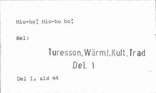 //// Hio-ho'. Hio-ho ho'. Mel: //// Turesson, Wärml, Kult. Trad Del. 1 //// Del I, sid 44 ////
