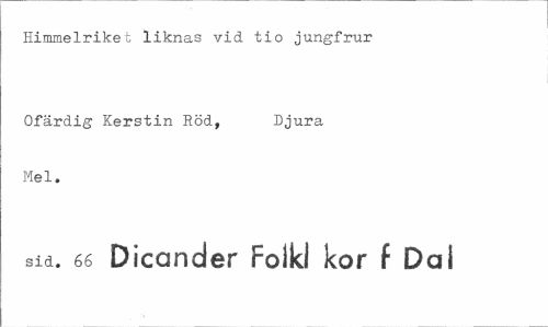 //// Himmelriket liknas vid tio jungfrur //// Ofärdig Kerstin Röd, Djura //// Mel. //// sid. 66 Dicarider Folkl kor f Dal ////